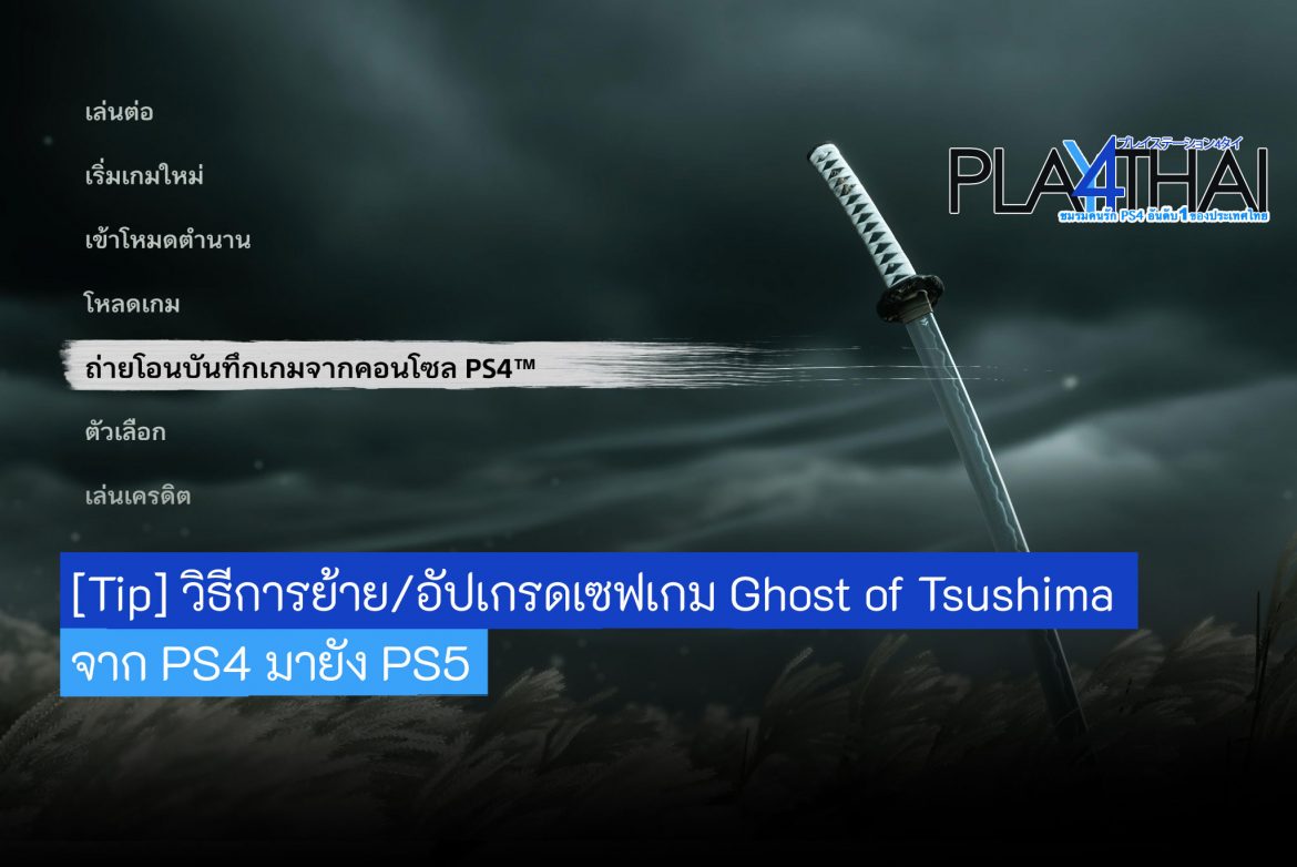 สวัสดีครับชาวเพลย์สเตชั่น ในที่สุด Ghost of Tsushima Director’s Cut ก็วางจําหน่ายและเปิดให้เล่นกันแล้ว ส่วนคนที่สั่งจองรูปแบบแผ่นอาจจะต้องรอทางตัวแทนจําหน่ายส่งแผ่นมาถึงมือเสียก่อนครับ ผู้เขียนเชื่อว่าหลายคนได้เล่น Ghost of Tsushima บน PS4 จบกันเป็นที่เรียบร้อยแล้ว ที่นี้ เพื่อจะสามารถเล่นต่อจากเซฟเดิมบนเกมเวอร์ชั่น PS5 ได้นั้นเราจําเป็นต้องย้ายเซฟจากเวอร์ชั่น PS4 และแปลงมาเป็นเวอร์ชั่น PS5 ซึ่งในวันนี้ทางผู้เขียนจะมาอธิบายวิธีการย้าย/อัปเกรดเซฟเกม Ghost of Tsushima จาก PS4 มายัง PS5 แล้วเพื่อไม่ให้เสียเวลาไปดูวิธีการกันเลย